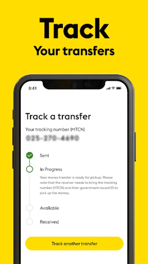 • Monitor your transfer status: want to know if the recipient got the money? Just check your transfer status on our app!