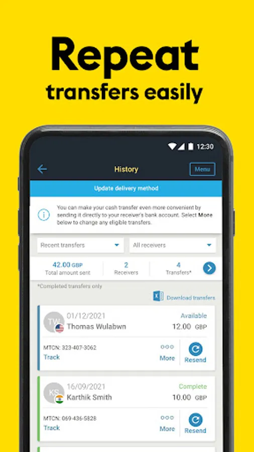 Do you need to send money regularly? Use the quick resend option to send money to your favourite receivers.
