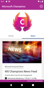 Microsoft Champions also supports a custom news feed (format based on the popular MSN news format), a custom ticker feed for breaking news on your products.