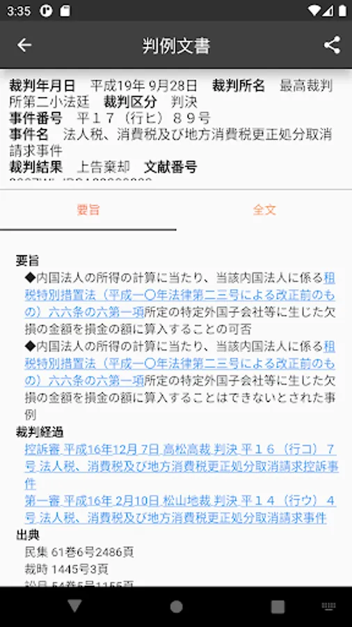 ・ Click the link to the related information (reference article, commentary article of Case Times, etc.) attached in the summary tab and the full text tab of each case, and the contents will be displayed in a pop-up format.
