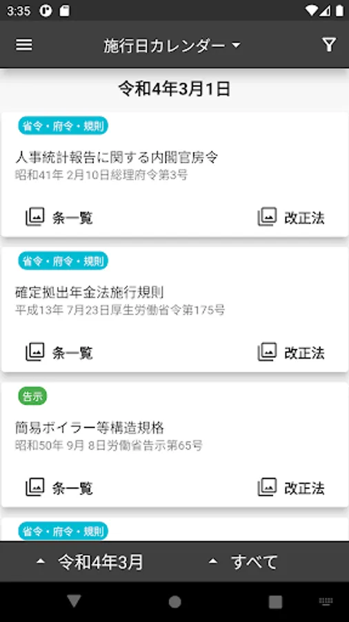 -Search results can be sorted by legal field, promulgation date, bill submission date, etc., in addition to the order of matching rate of law names.