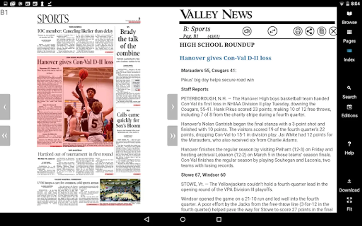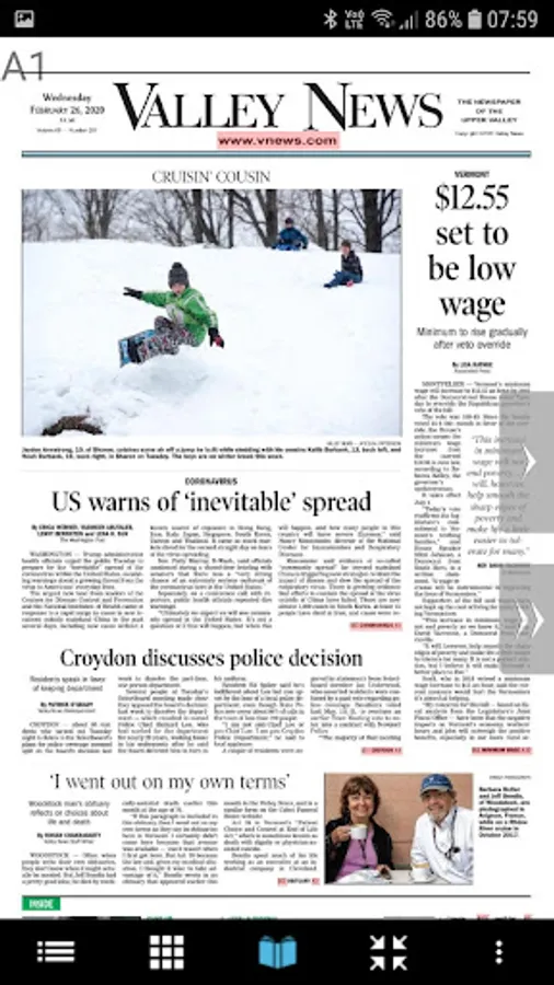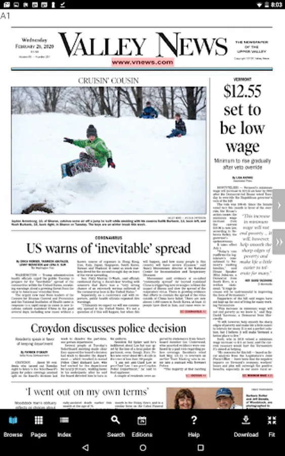 The Valley News E-Edition app lets subscribers read their favorite paper on a tablet, with all the stories, ads and photos shown exactly as it appears in print. The app uses multi-touch gestures to provide fast and easy navigation and a natural paper-like reading experience.