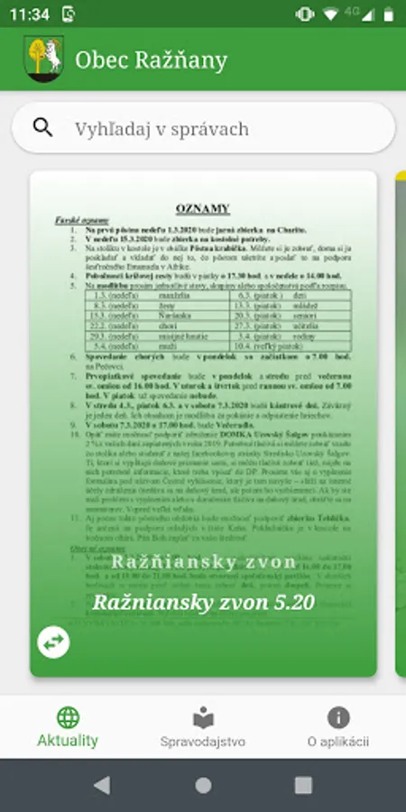 Mobile application for residents and all who are interested in what is happening in the village Ražňany.