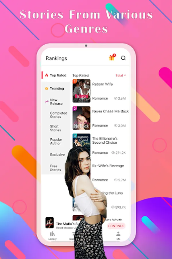 • Explore from its genre-wide category that covers marriage, CEO, young-adult, teen fiction, romance, fantasy such as vampire and werewolves fiction, LGBTQ+ novels, thriller, mystery, and more!