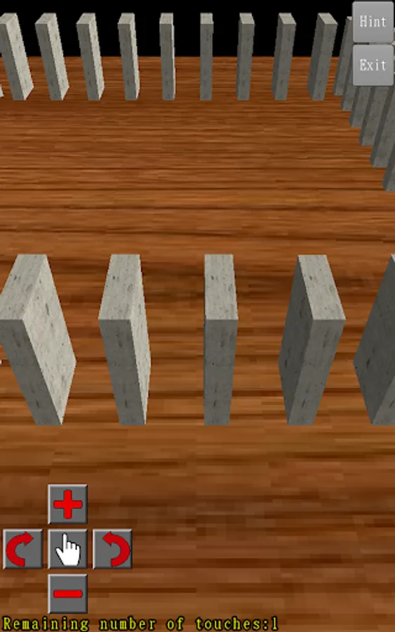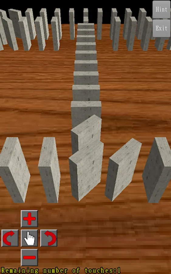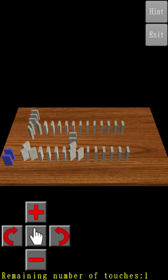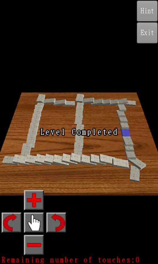 The level is completed when all dominoes are knocked down within the specified number of touches.