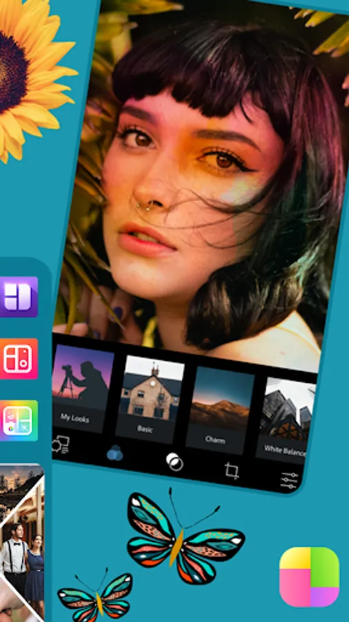 You can easily mirror pictures of yourself and make amazing collages with your images through various layouts.