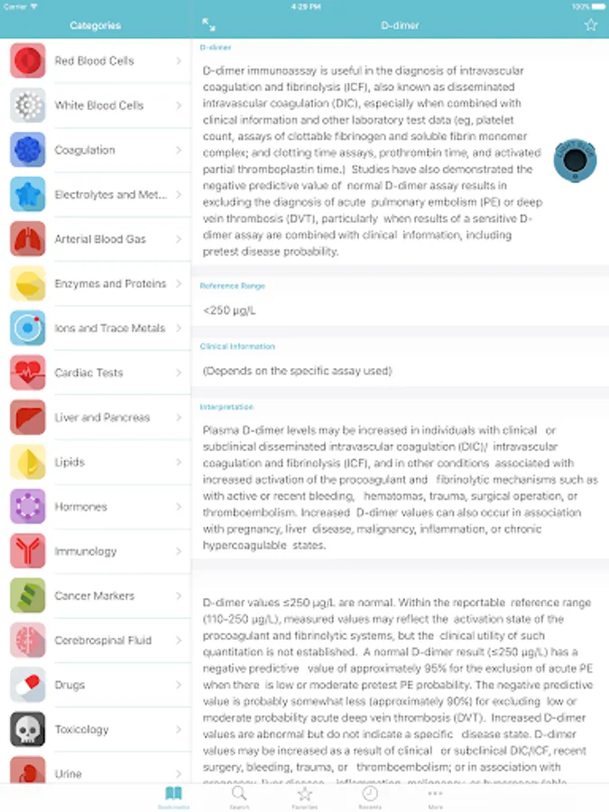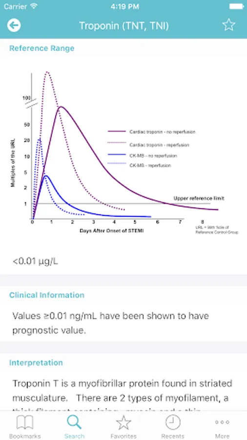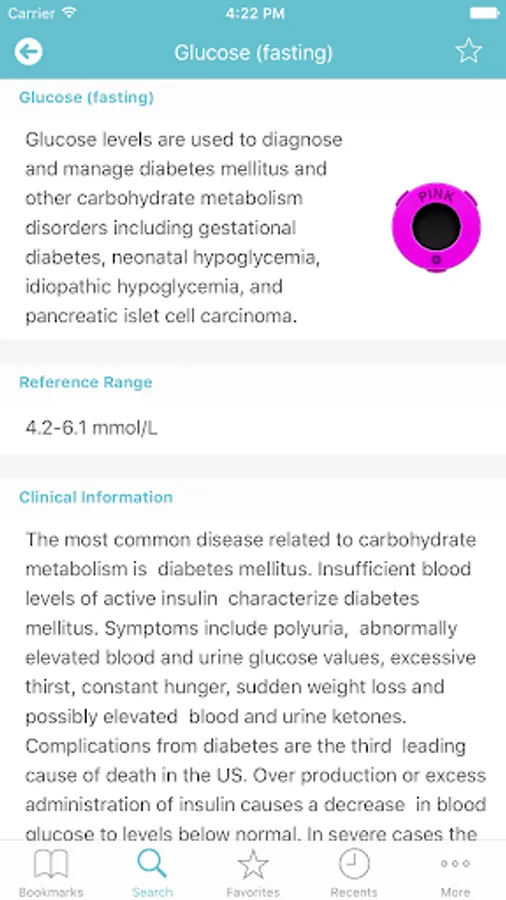 Once you open a lab value to read more about, you get to read a brief description along with reference range, clinical information and interpretation.