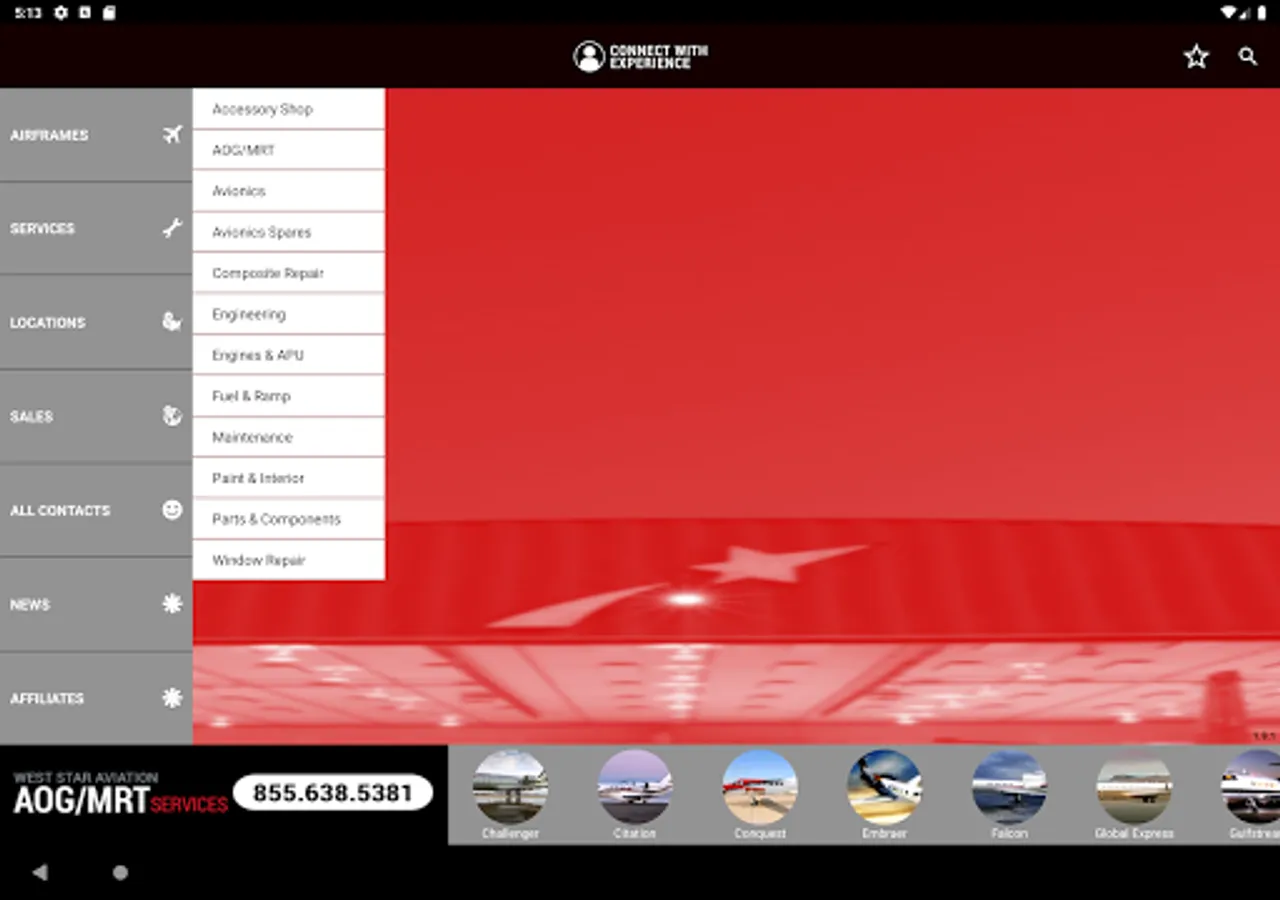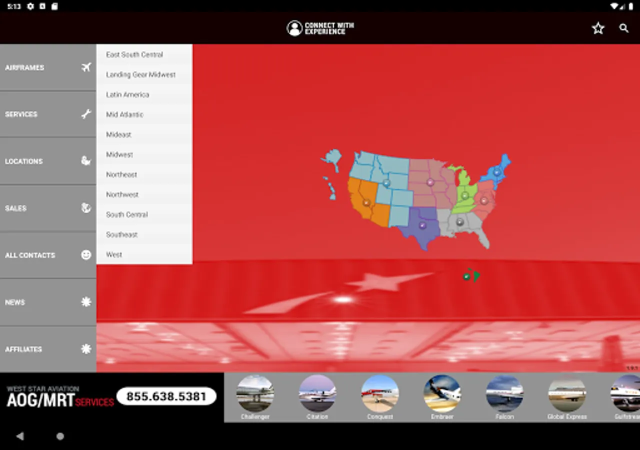 With a few simple taps, the "Connect With Experience" tablet-based mobile app provides a direct contact with the appropriate experienced West Star Aviation personnel, for the award winning aircraft service you need, when you need it, at a location convenient to you.