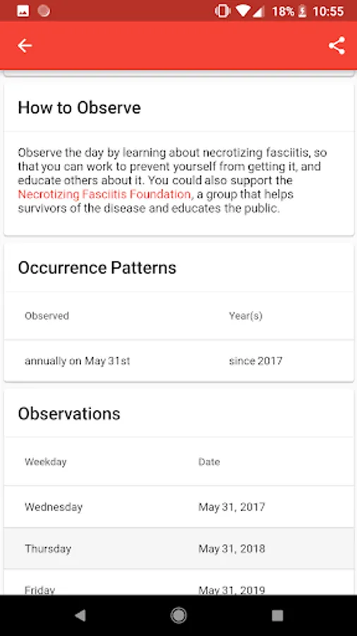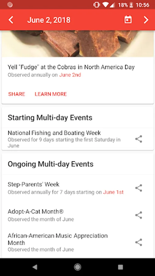 Checkiday simply tells you what holidays are being celebrated on any day, as well as multi-day events like week and month observations.