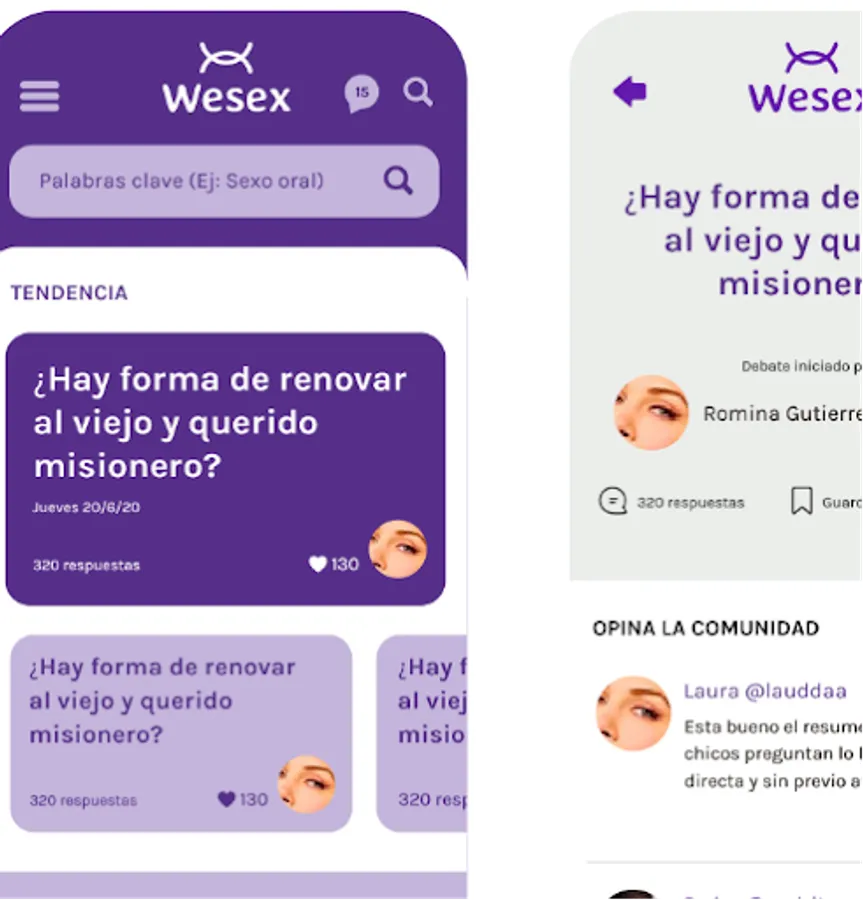 “¿Qué les gusta que les digan en la cama?” ; “¿Qué opinan del 69, está sobrevalorado?” ; “¿Cómo hacen para invitar a salir a alguien?” ; son algunos de los debates que encontramos en la app, creados por los usuarios que conforman la hermosa comunidad de WeSex.
