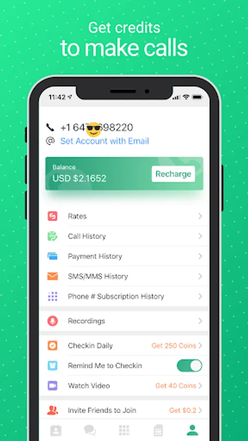 Want to call you overseas friends, family and colleagues using a second calling number? You can sign up on this app, create a user account and subscribe to get a WeChat international phone number. Use the USA/Canada phone number to make calls and send/receive MMS/SMS/Picture messages to anyone in the world.