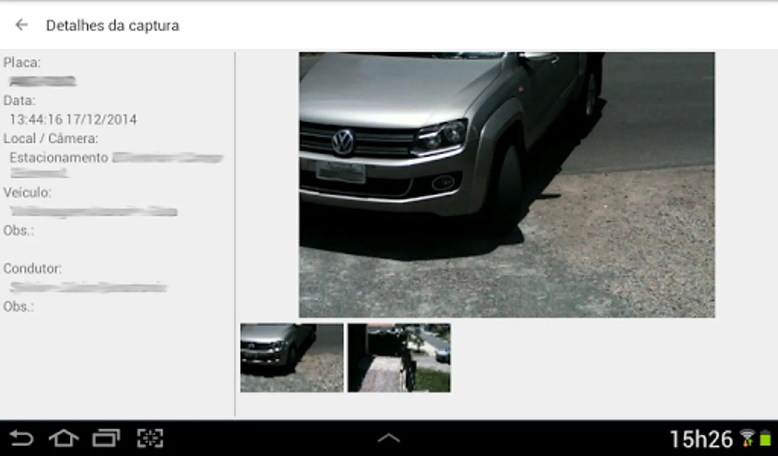 Through the application you can view entries and vehicle entrances, with alert option for tracked vehicles.