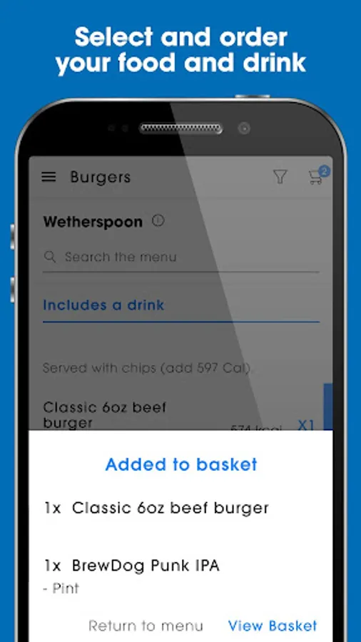 Order food and drinks with the Wetherspoon app, from your phone, and have them delivered to your table.