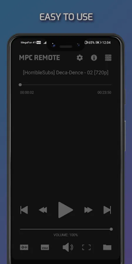 Simple and minimalistic application for remote control your Media Player Classic.
