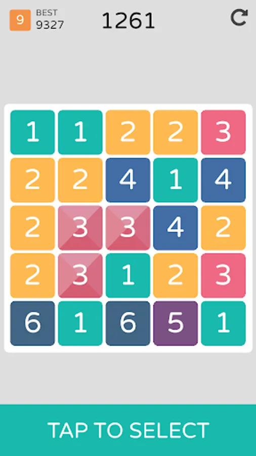 2. Tap on at least 2 adjacent blocks with same number to select.
