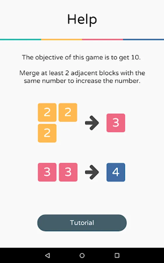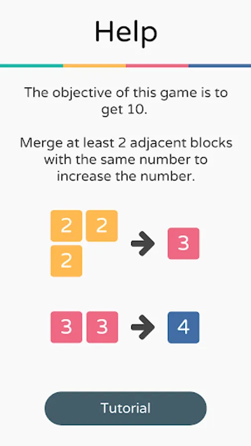The objective of the game is simple, just get 10. Merge blocks with the same number to increase by 1 until you get 10. It may sound simple but may not be that simple.