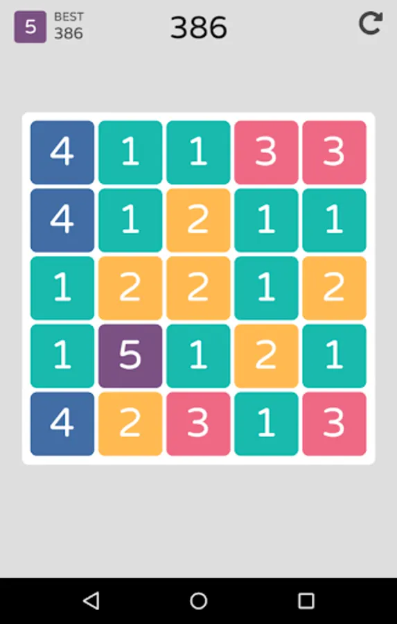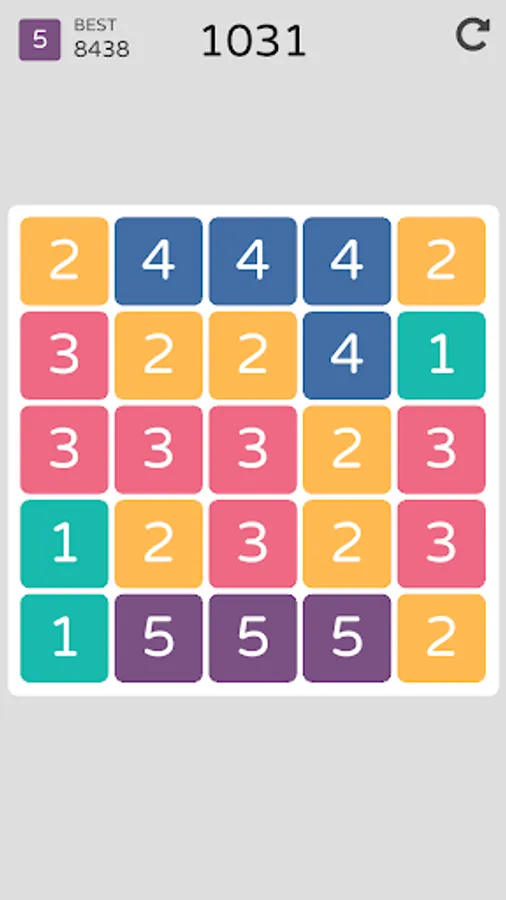 7. When there is no more adjacent blocks with the same number, it’s game over.