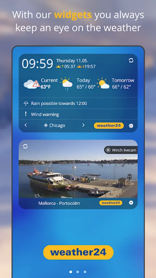 Enjoy great features. Our weather app offers much more than just basic functions. Thanks to the live cams you can watch the weather live at the Eiffel Tower or on the other side of the country.