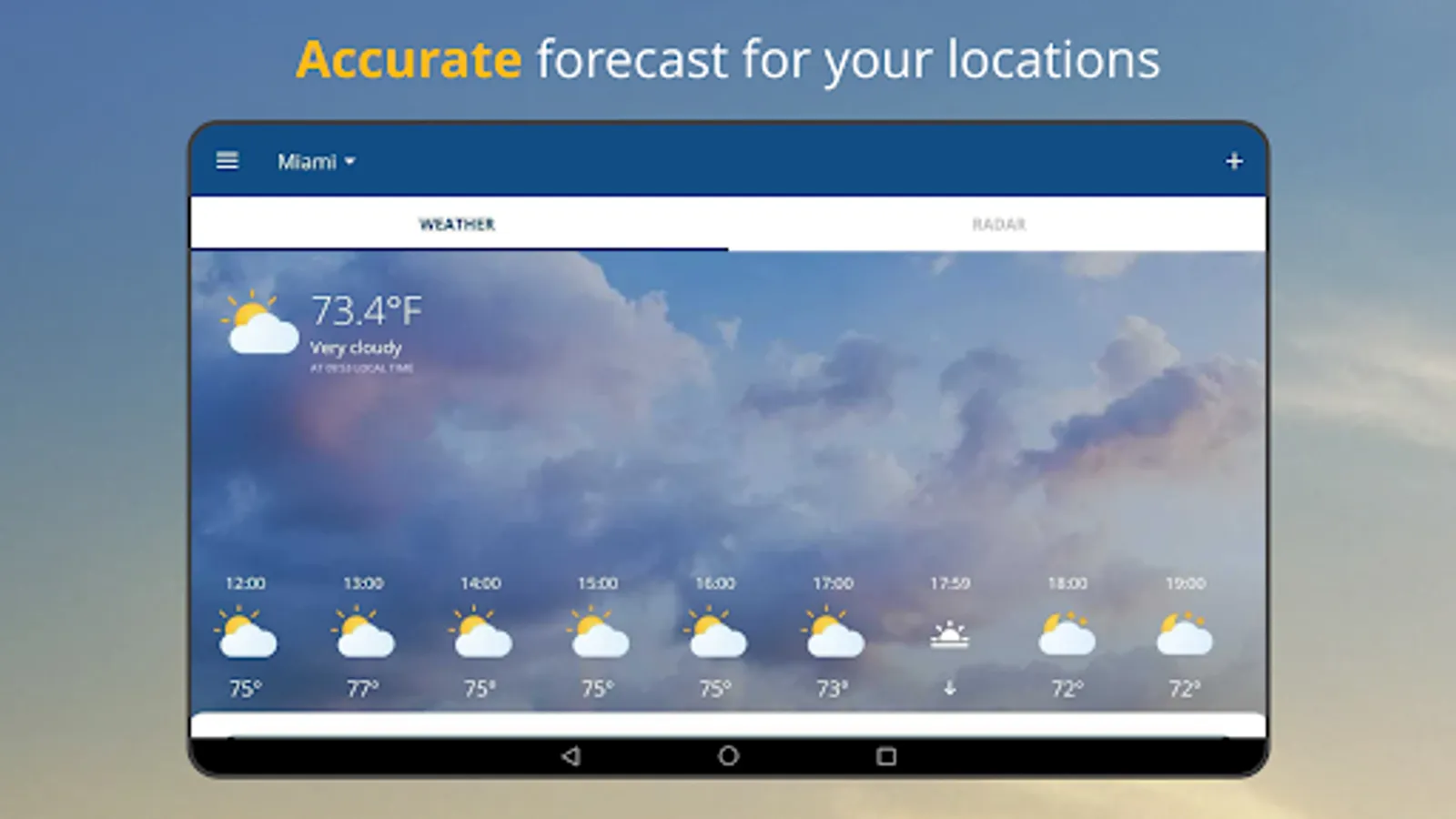 The weather24 app analyses several data sources to give you a detailed overview. This way you’ll see the current temperature, the air pressure or the time of sunset. A short burst of rain or a continuous downpour? You’ll know everything, thanks to the forecast of our rain radar.