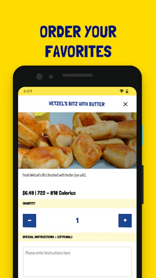 - Order your favorite hot, fresh pretzels in just a few taps!