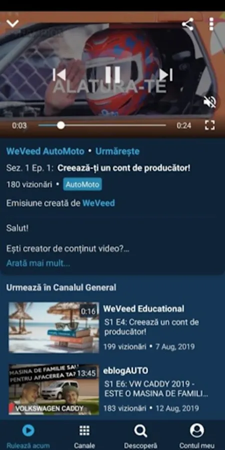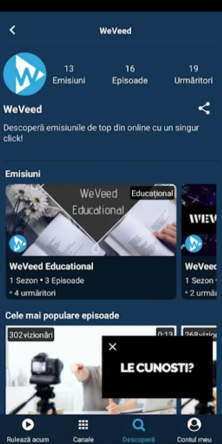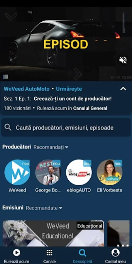 Thus, each creator enjoys the synergy value of everyone posting on the platform, and the user (the consumer) can access with one click the latest shows in its interest categories, can relax by watching a general program or use the application as any another classic video on demand platform.