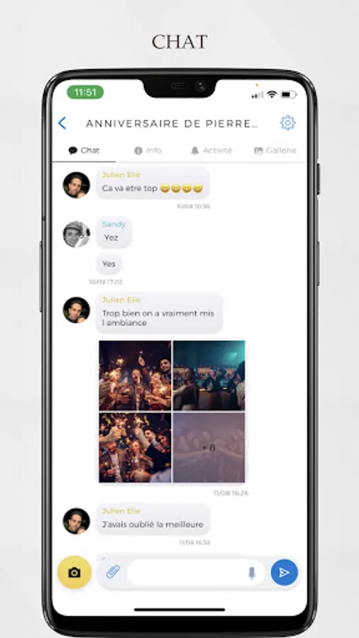 Your photos and videos as well as those of all the participants are saved for free in your timeline and sorted by events so that you can relive your best moments whenever you want.