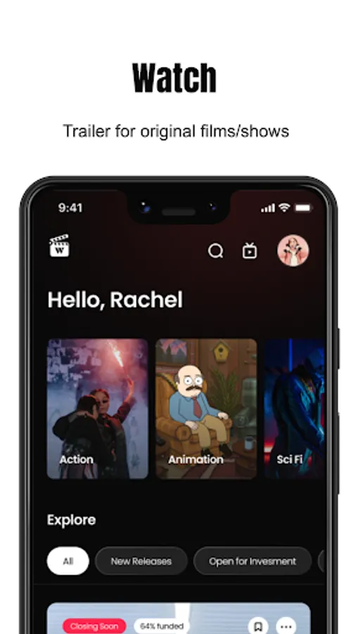 • Invest in professional films & television series through WeVidIt’s online marketplace.