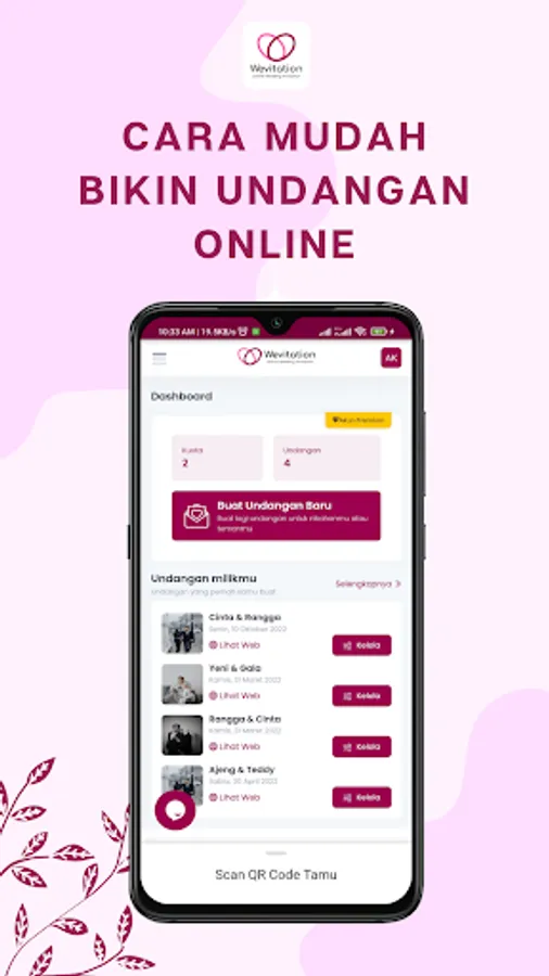 Wevitation Mobile App version and QR Code Scanner for reception. Wevitation is a Website based Digital Wedding Invitation platform. You will easily create digital wedding invitations, guest management, and send invitations to your guests. Wevitation has the following interesting features: