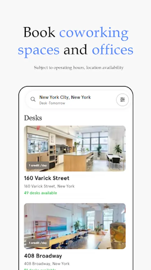 Enhance your productivity with one of the world’s premier flexible workspace providers. Easily book coworking space and private offices for the day and meeting rooms by the hour. WeWork provides the tools you need to get more out of your workday. Get started by downloading today and search from hundreds of locations directly in the WeWork app.
