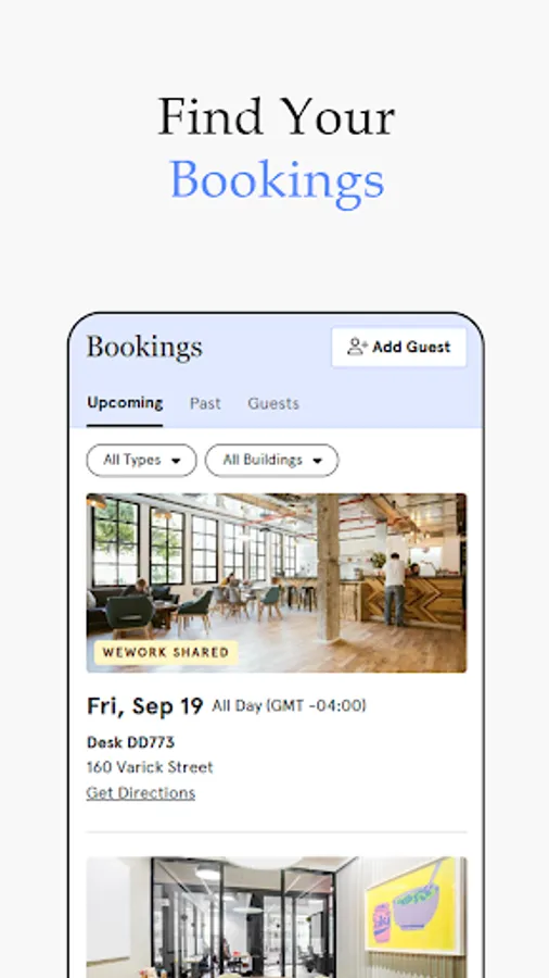 **This feature is accessible by select memberships and is not available for WeWork On Demand members. WeWork On Demand is only available in the United States, Canada, Australia, Singapore, United Kingdom, Ireland, Germany, France, Spain, Poland, Netherlands, Belgium, Sweden, Czech Republic, Mexico, Brazil.