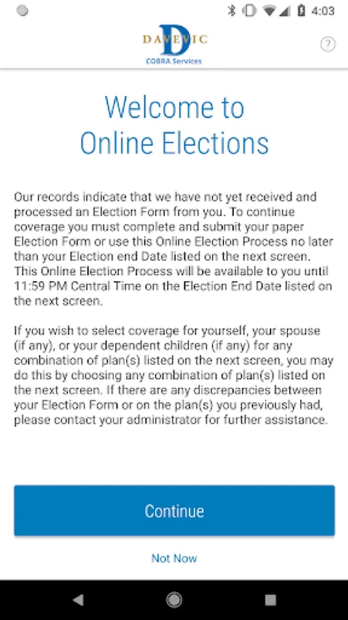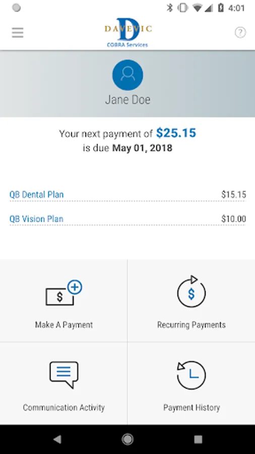 Stay up to date and worry free with the Davevic COBRA & Direct Billing App! Manage your plans 24/7 through the intuitive design and navigation while on the go. Powerful features of this app include (if supported by your account):
