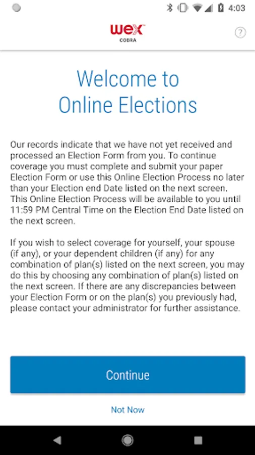 Access and manage your COBRA + direct bill account details using the COBRA + direct bill mobile app by WEX. With a user-friendly design and access to powerful features, your account may include:
