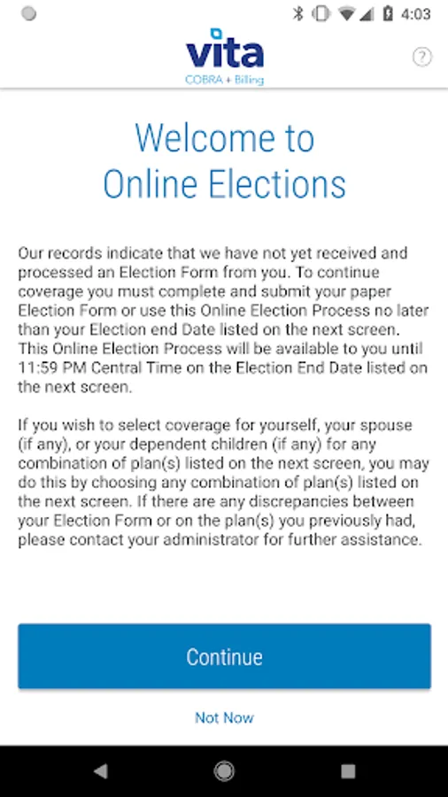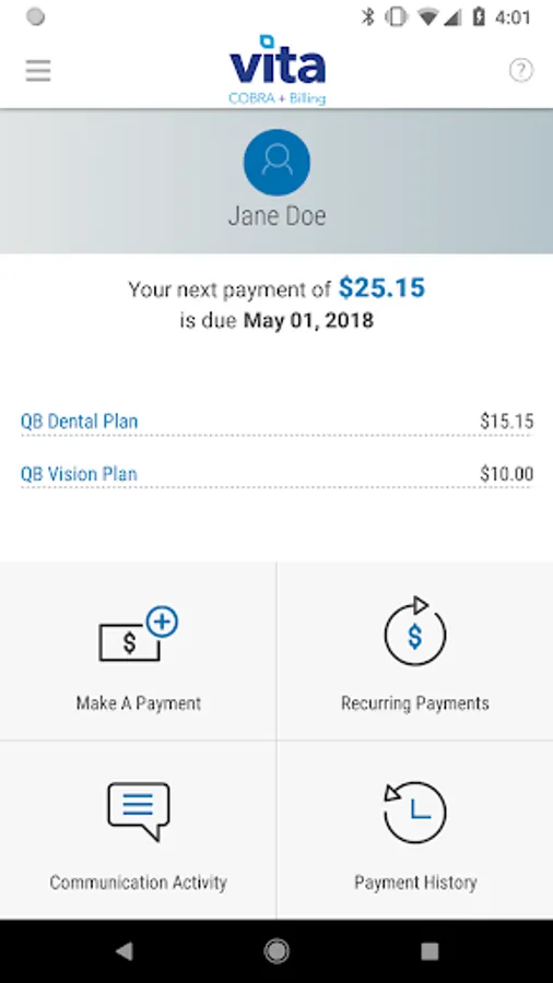 Stay up to date and worry free with the Vita COBRA & Direct Billing App! Manage your plans 24/7 through the intuitive design and navigation while on the go. Powerful features of this app include (if supported by your account):