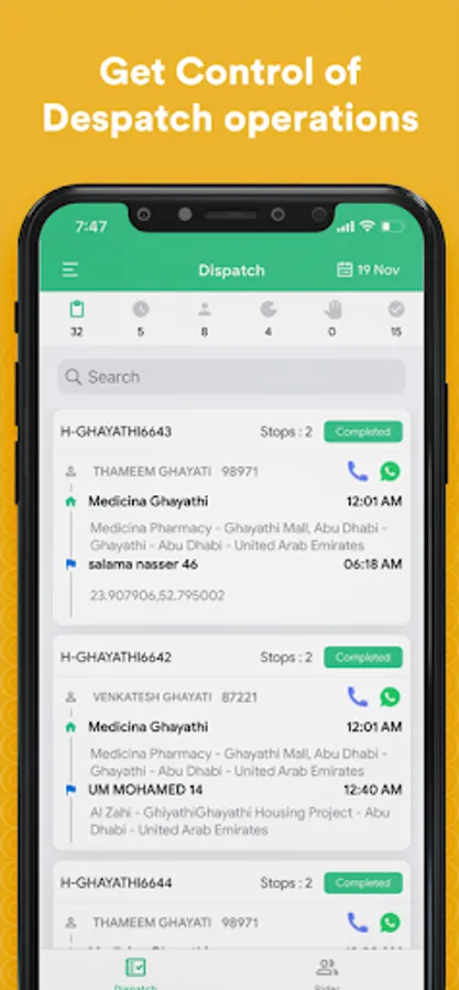 Dispatch: Get to know all your dispatch/delivery movements on the Go
