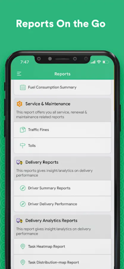 Driver behavior: Monitor your driver performance and scoring on the Go.