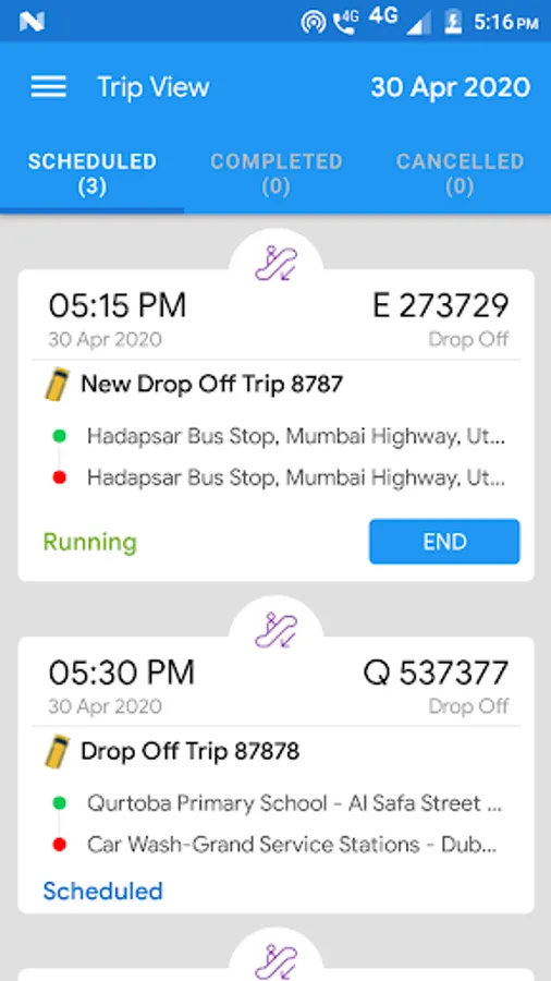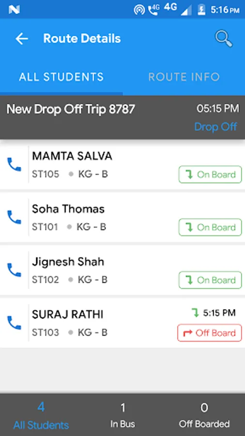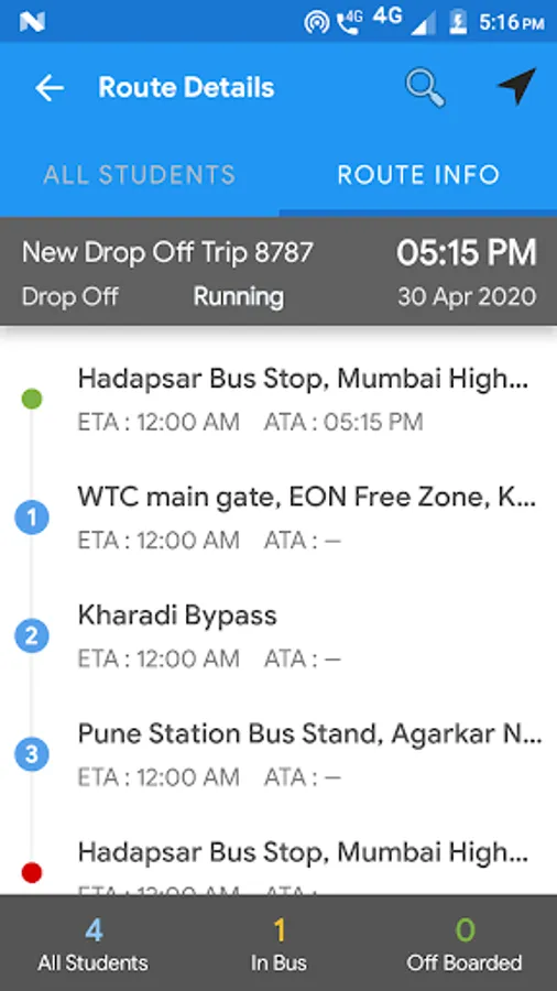 Trips: Daily Routes with the stoppage and student information’s on each of the stoppages