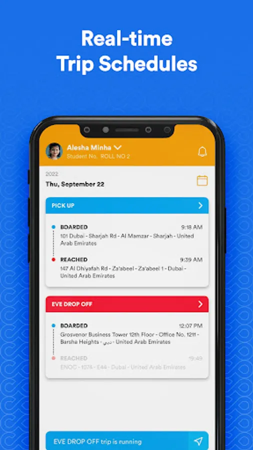 Live Tracking: Parent App allows you to track the actual time or live location of your children with Accurate ETA
