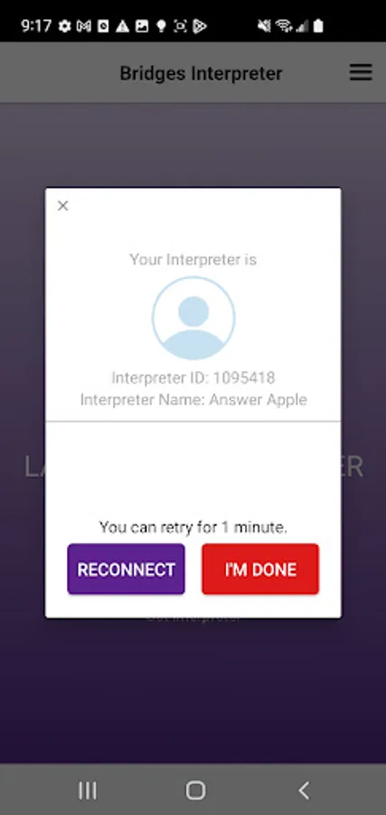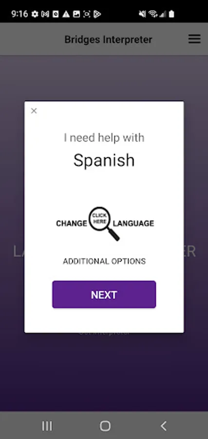The Bridges Interpreter app is used by individuals to access professional interpretation services via video or voice. These interpretation services are offered by a professional Language Service Provider and commonly referred to as Video Remote Interpretation (VRI) or Voice Only (VO). Users click on the app, choose the languages they need help with and are connected to a live interpreter. Access to the interpretation services is usually provided by an employer or agency in a professional setting such as health care, law, international business, or social services. There is a companion app used by the interpreters.