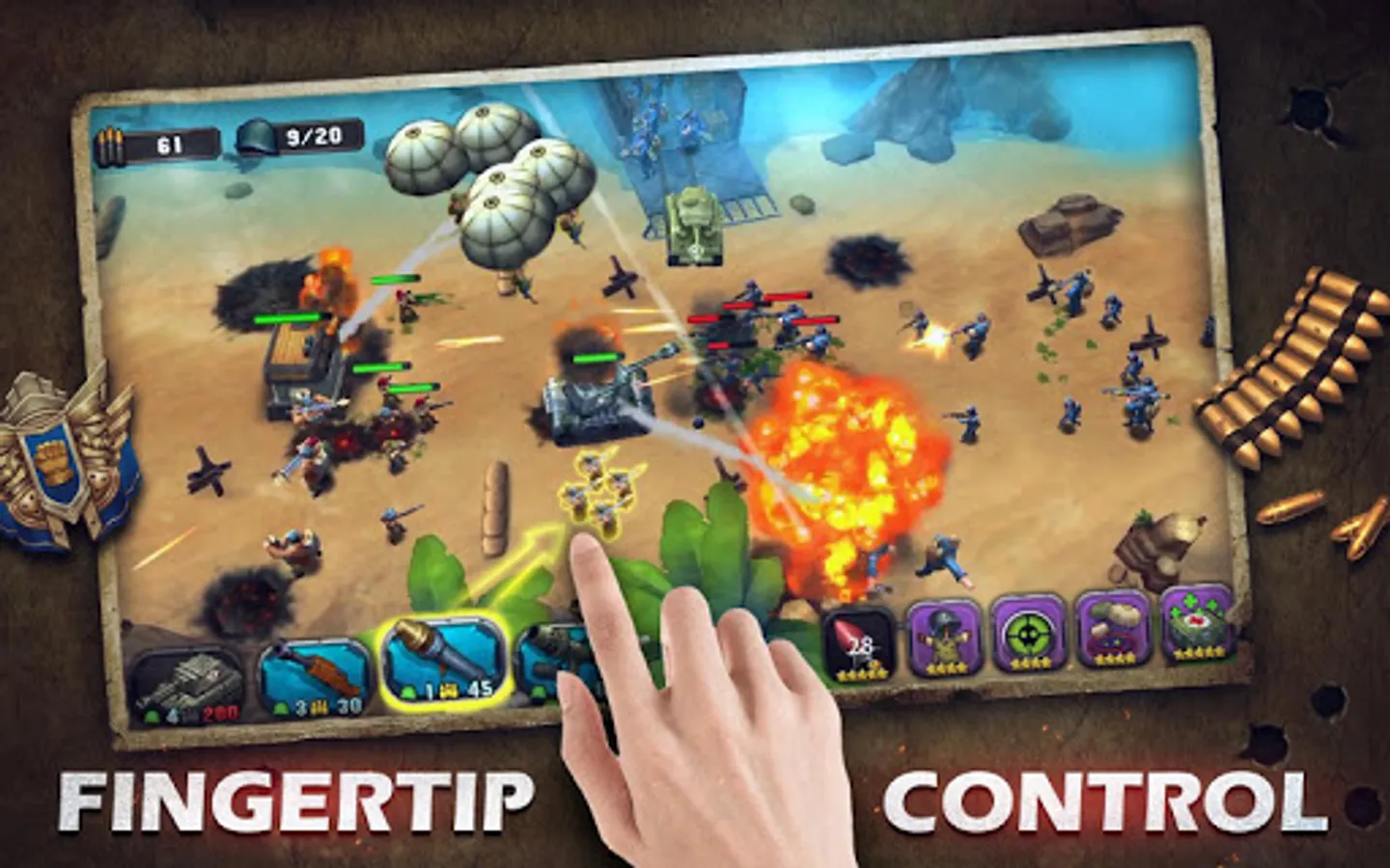 – Train and lead 8 troop types and 50 famous generals from World War 2 into action packed battles. Level-up and deck out your Hero, craft legendary weapon to rise above the competition.