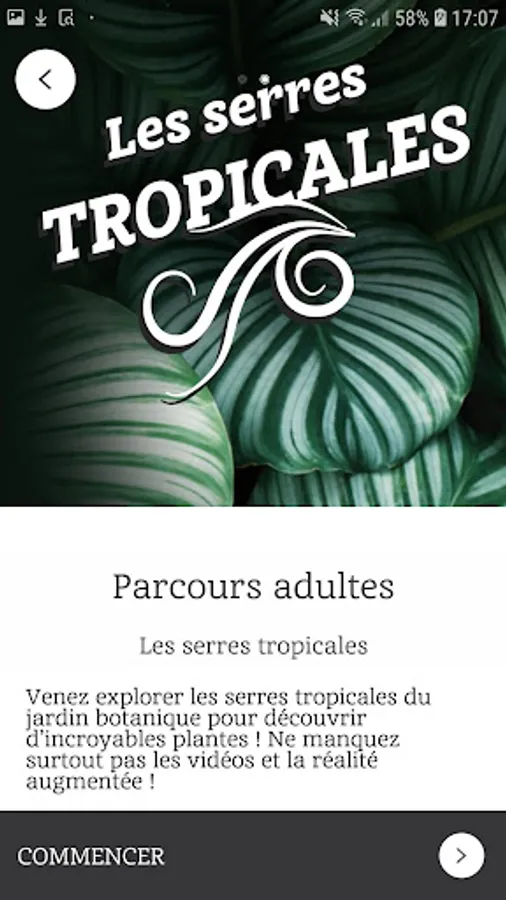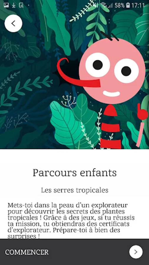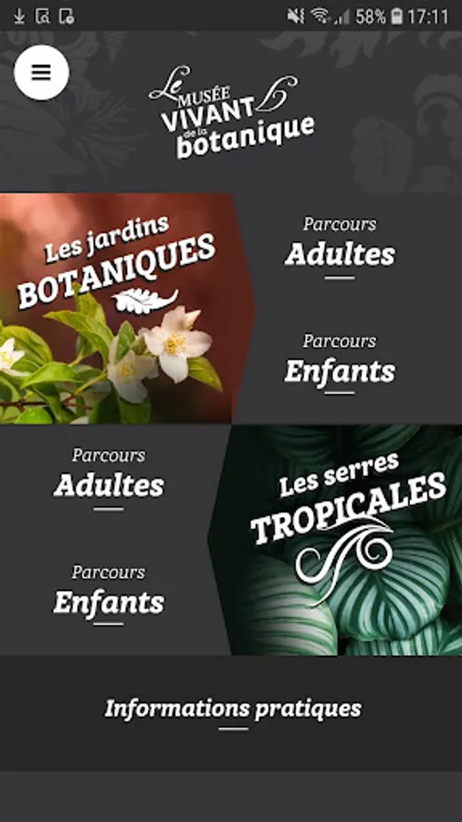 The "Botanical Gardens" application allows you to discover the tropical greenhouses and the Botanical Garden Park through educational games, videos and augmented reality. It allows, in a fun way, to learn more about many botanical aspects: plant-animal relationships, endangered species, the role of seeds, etc.