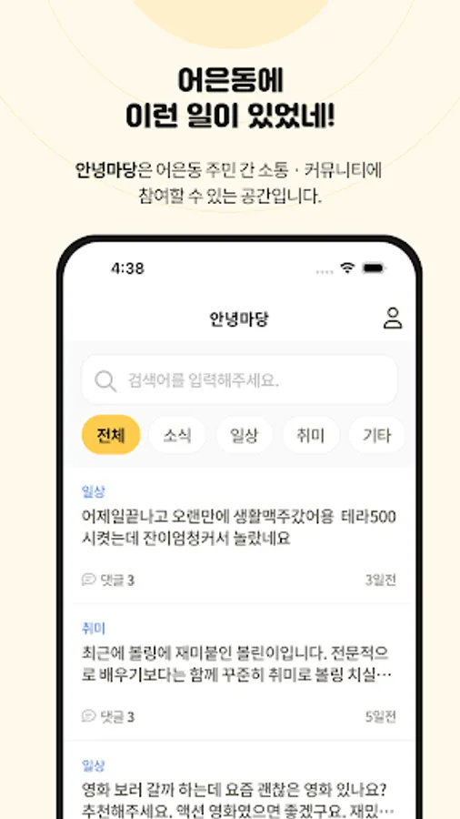The Hello Meeting page is a space where you can introduce and participate in activities among the residents of Eoeun-dong.