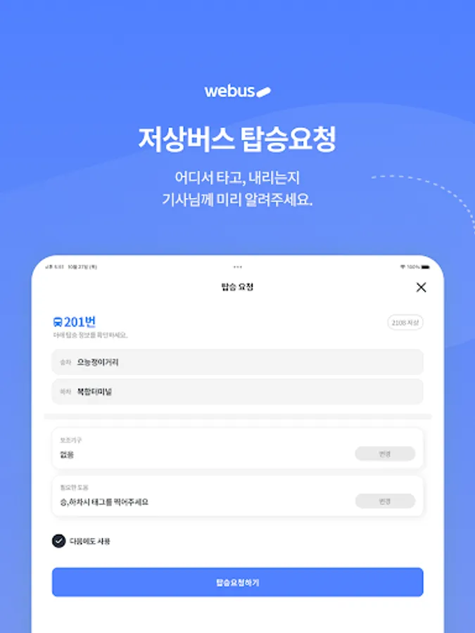 1. Request to board a low-floor bus: Please inform the driver in advance where to board and get off.