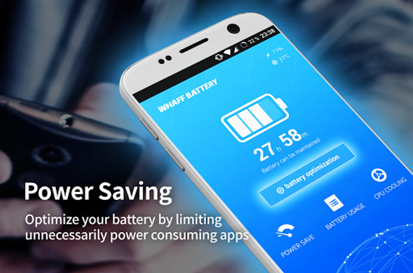 WHAFF Battery is designed for stopping unnecessary background apps and efficient battery management.