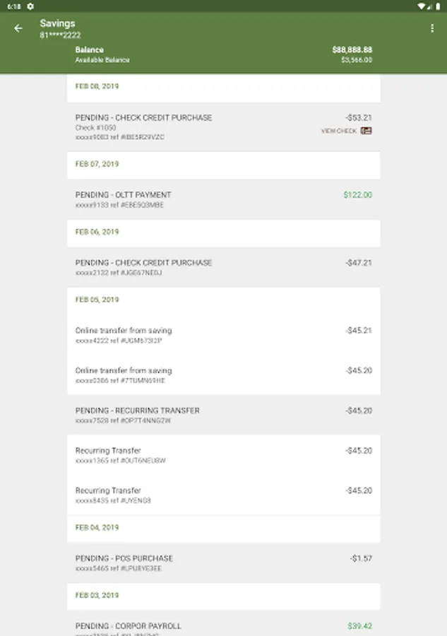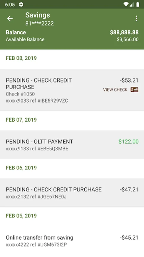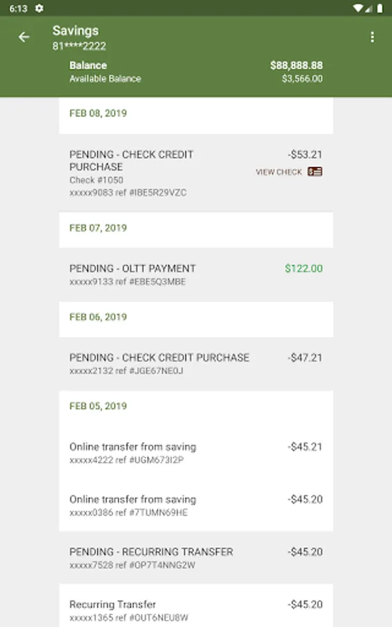 - View recent transactions, including check images