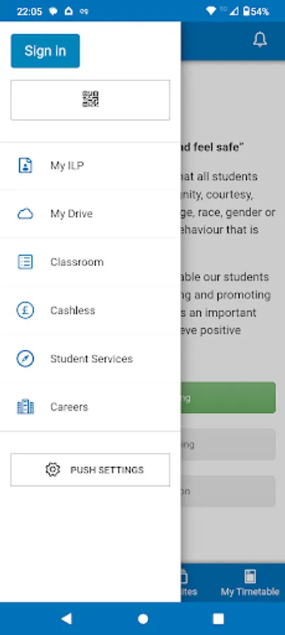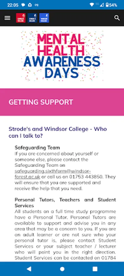 Use the QR scanner to scan codes around College. Use the support section to contact the Welfare and safeguarding team.
