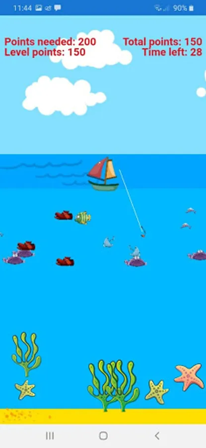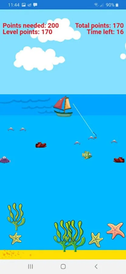 fishing game that has been developed to play the role of a fisherman. Where you will throw the hook in the sea to catch fish to gain points. There is a group of levels, each level requires access to certain points to pass. The higher you level, the more points you have to collect before the time runs out. Big fish give you more points than small fish