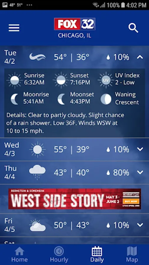 ° The FOX 32 Chicago Weather app includes current conditions updated multiple times per hour