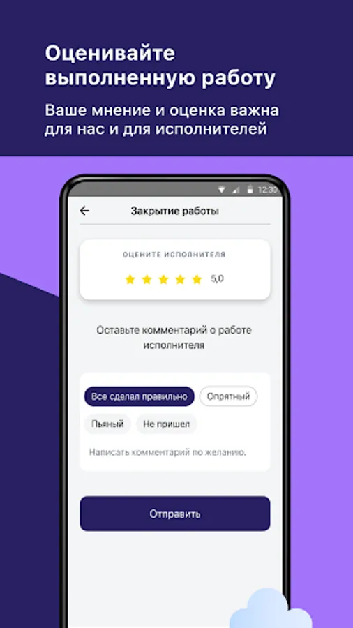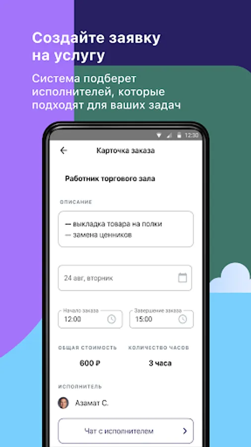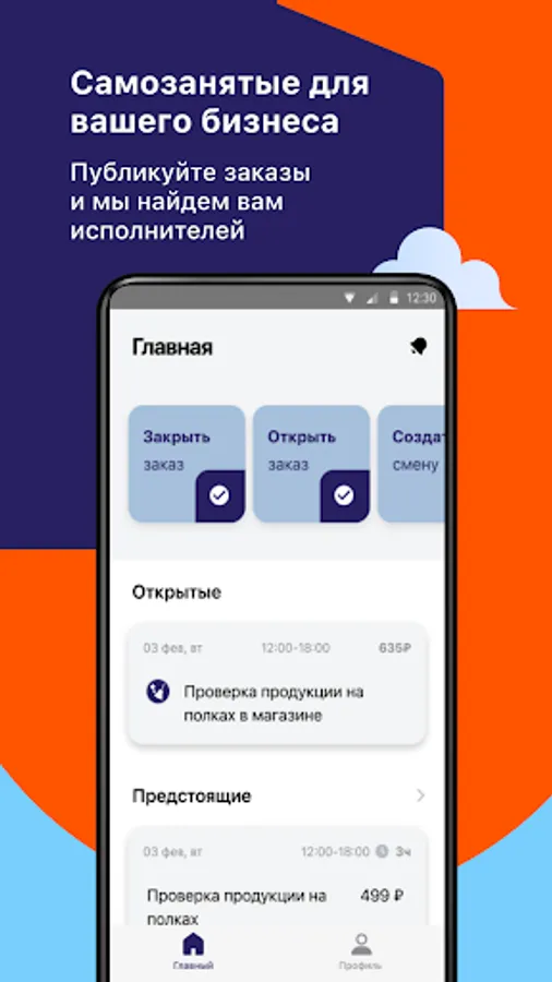 Mobile application with the function of creating, opening and monitoring applications for self-employed services.