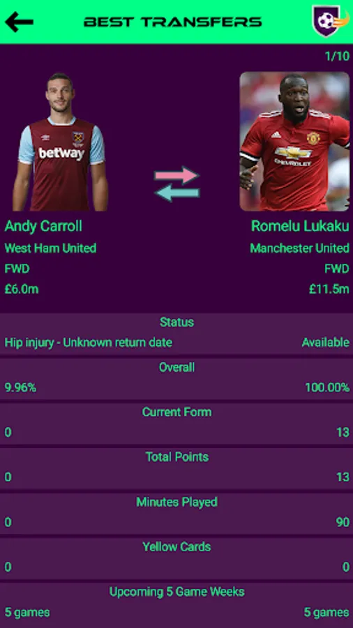 Whether you’re a newcomer or a seasoned pro, The Fantasy Football Transfer Guru App will help you climb to the top of the league as it scouts out the best players for you.