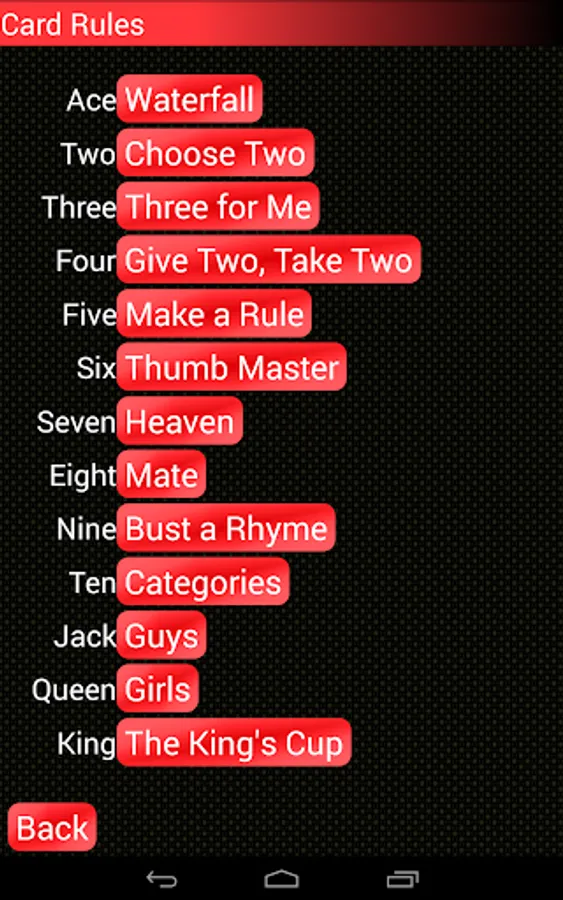 Alternatively, if you wish to play the King's Cup (Kings) with real cards, use this app as a rules reference, or simply to find new rules and drinking game ideas!